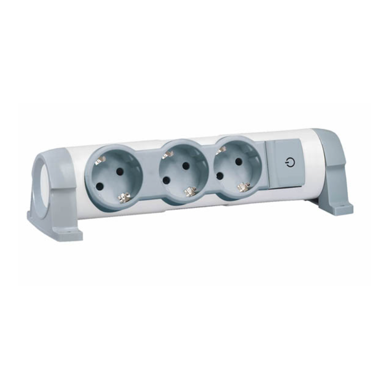 Bloc multiprises avec œillets de fixation pour un montage mural, 2m de câble H05VV-F 3G1,5 pour plus de mobilité