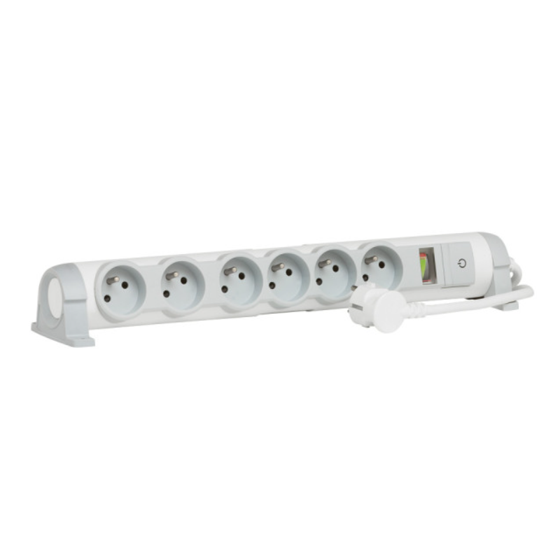 Barre multiprise ToMultiprise dotée d'un parasurtenseur protégeant vos appareils contre les pics de tension ou les effets néfastes des coups de foudre indirects allant jusqu’à 19500A (voyant de mise en service lumineux)