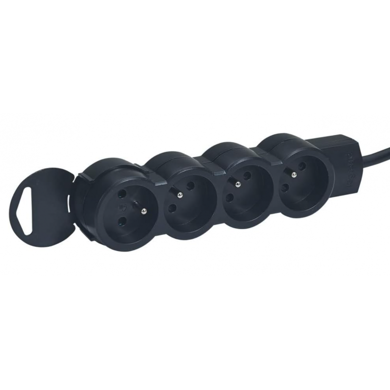 > Legrand Rallonge Multiprise 4 Prise avec Cordon 3m, Courant 2P+T, 16A, 230V, Noir